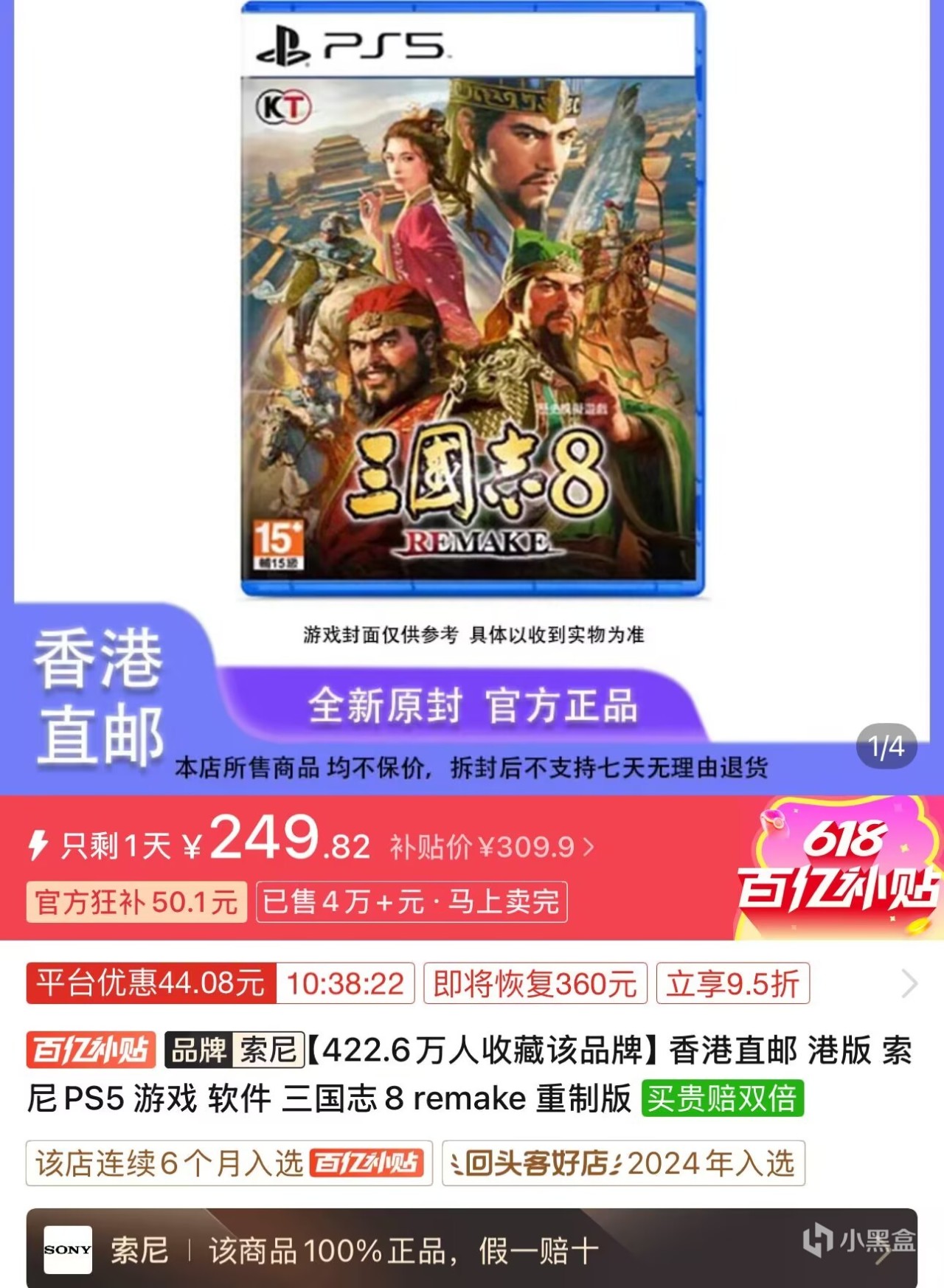 3.PS5游戏《三国志8重制版》港版中文249.82元全新包邮,光荣的三国志策略游戏一直都在走高价路线,不过比起动着500大洋的首发价格来看,实体版游戏降了一半确实可以买了,毕竟不玩了还可以出二手闲鱼平台回血,也不会损失多少,喜欢历史策略游戏的玩家可以买。
