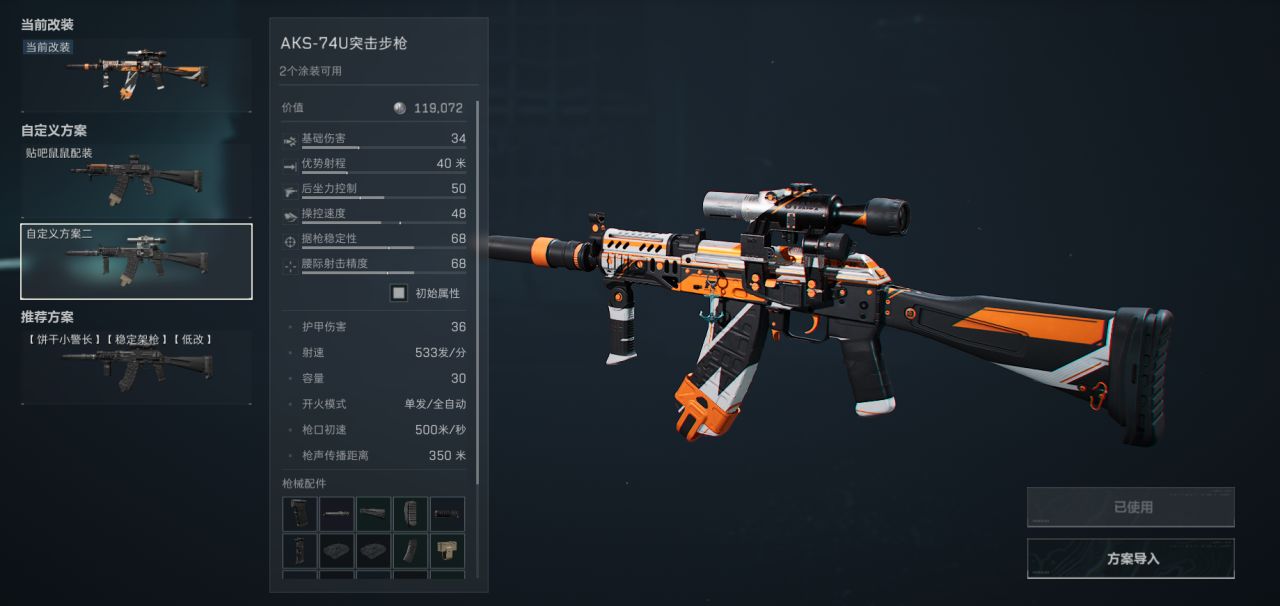 但就是這樣一把在近點打不過沖鋒槍,遠點打不過其他步槍的槍也是有他的優勢的。ak74u高改僅需不到10w(前後握軍需處兌換假賬)就可以享受到15據槍三倍鏡四級彈潑水的體驗,熟練掌握彈道和手感後在中遠距離也算是一把勉強可以用的步槍(這東西在cod裏算衝鋒槍)。