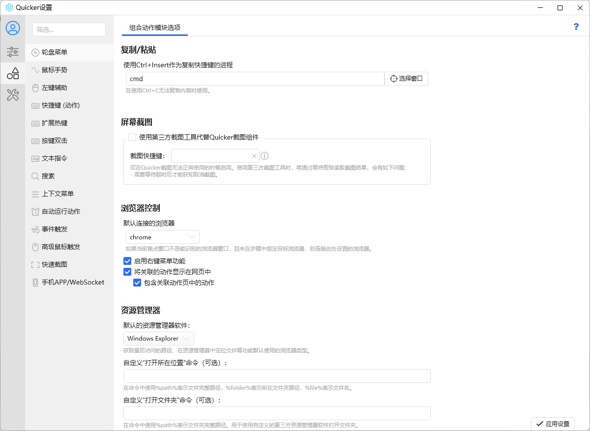 Quicker :知名瑞士軍刀,具有豐富的動作塢、自定義鼠標手勢,你絕對值得擁有。還可以根據在不同的應用喚醒,設置不同的動作頁。最推薦應用之一,單開一篇也不爲過。
