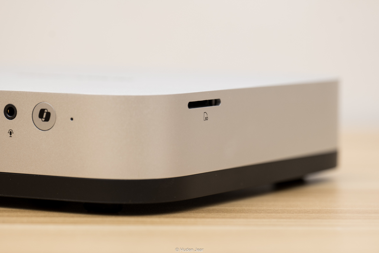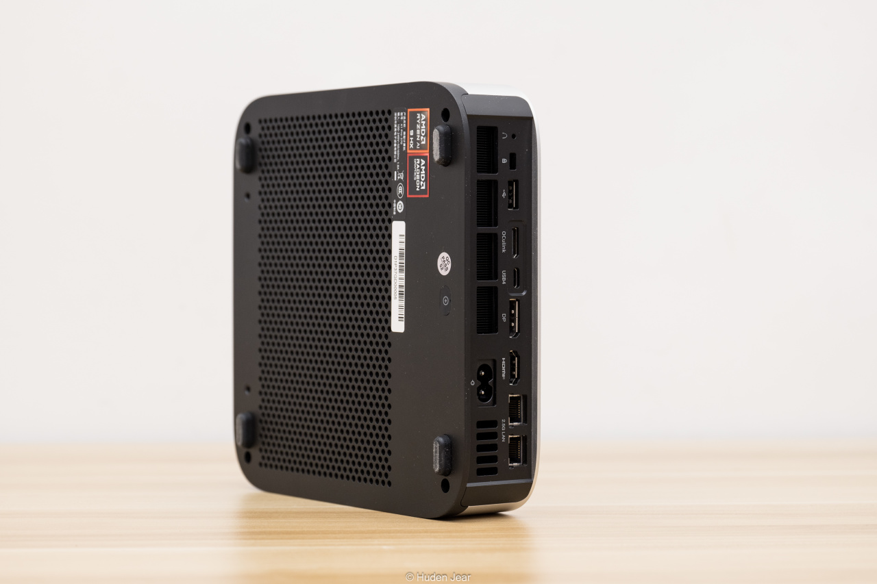 底部使用蜂巢型的散热孔,RyzenAI 的标志也隐藏在这里,非常低调。在主机的右侧还有一个SD卡槽,可以直接读取相机用的储存卡,也是工作站miniPC上比较常见的设计