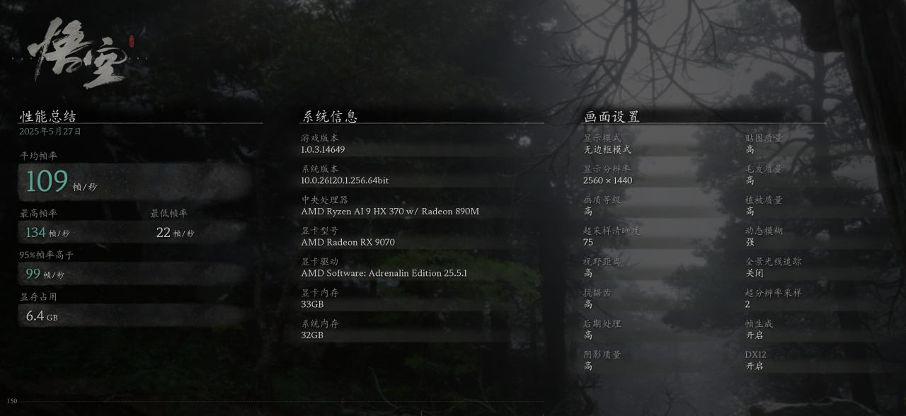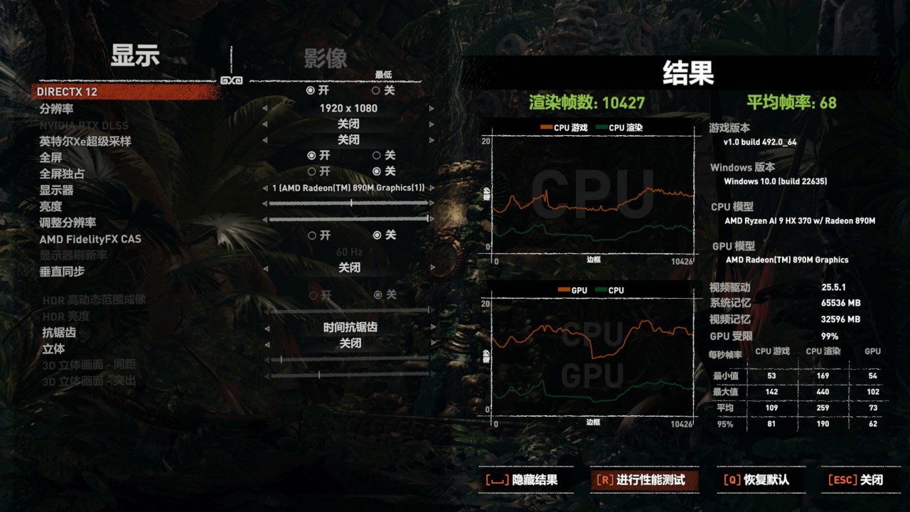 实际游戏表现上,如果是4K游戏,那么显卡基本能发挥出全部的实力,从古墓丽影11的报告里面可以看出来,4K的情况下是显卡瓶颈,也就是显卡的性能已经被发挥到极致了。而1080P下,因为HX370的单核还是稍逊于桌面级CPU,所以性能略微受限,不过9070这张显卡本身定位就是2K-4K,使用这两个分辨率基本就能发挥出全部显卡实力了。