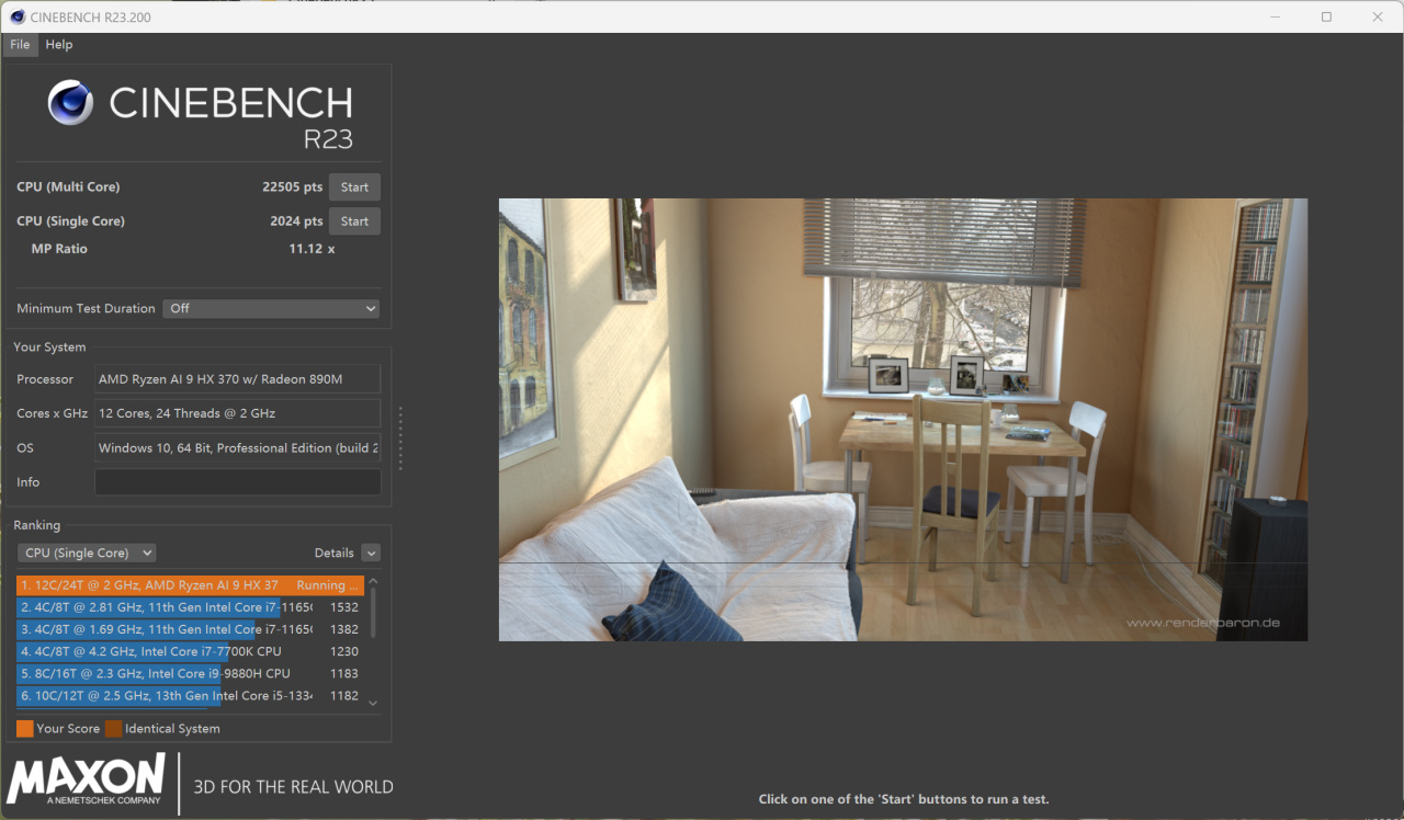 CPU测试分数也很不错,CinebenchR23的22500分多核+2000以上的单核成绩,这在桌面级上看齐最新的9700X完全没问题,mini主机有这个多核性能,而其功耗仅有65W,能耗比惊人啊