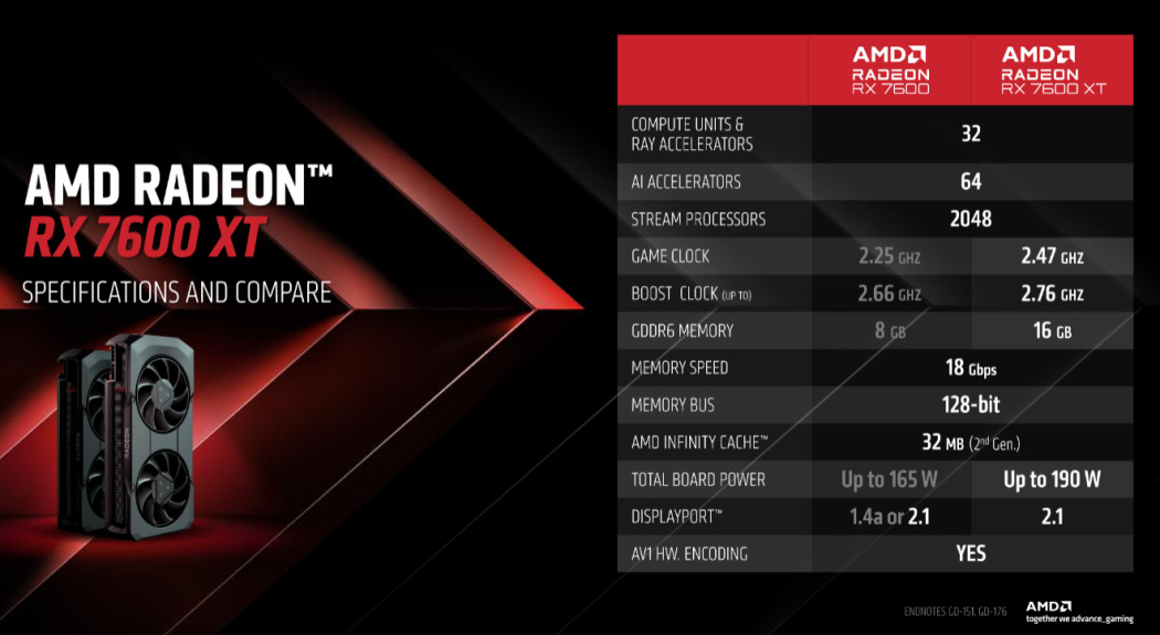 2023年, AMD推出了基於Navi 33的RX 7600,睿頻頻率爲2655 MHz,,後續XT版本抬升到了2760MHz。