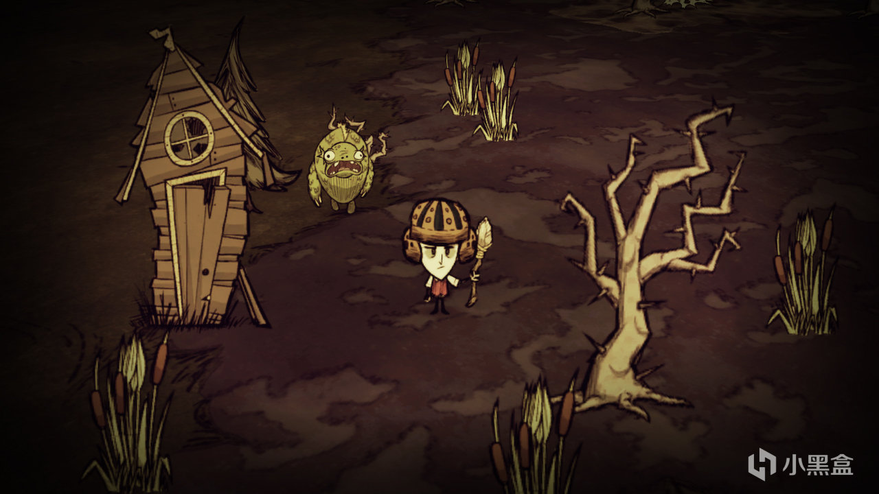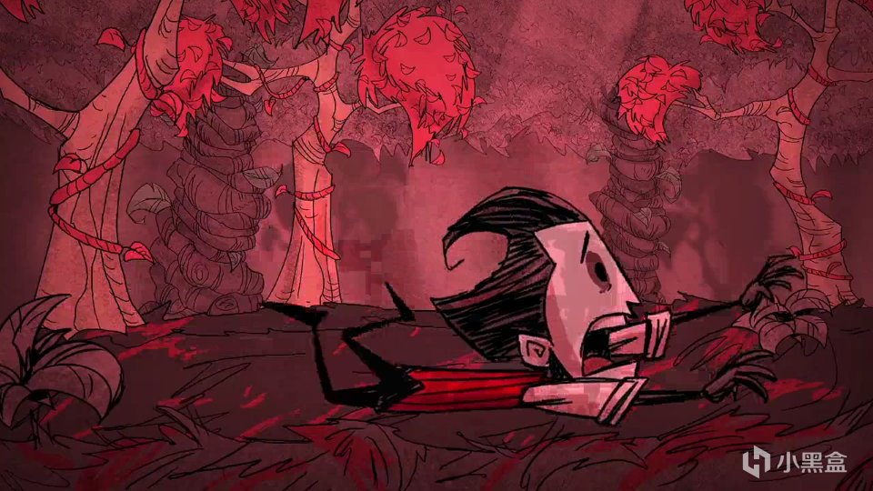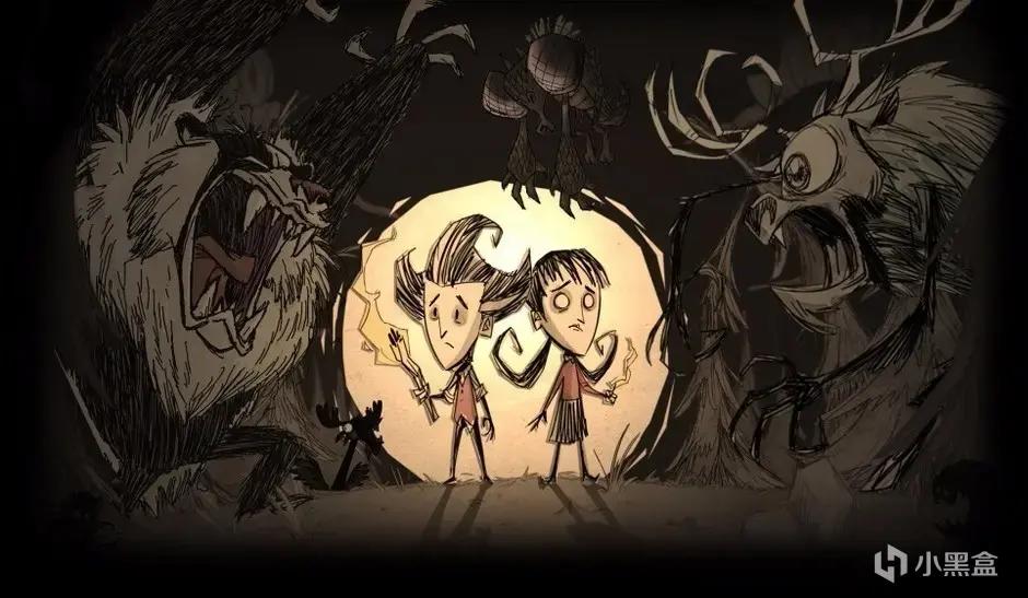 當下我正操控着威爾遜,於手機屏幕這有限的空間內不斷重複他的命運,2025年推出的《饑荒:新家》(現已改名爲《飢困荒野》)手遊版本依舊承襲了PC端的荒誕美學風格:那扭曲的枯樹好似痙攣的手指直直刺向鉛灰色的天空,草葉在風中發出的簌簌發抖的聲響被放大得清晰可聞,當遠處傳來獵犬的喘息聲時,我的掌心已然沁出了冷汗。像我這樣九年前初次接觸《饑荒》的老玩家,竟然在深夜仍會被查理掐滅火把的瞬間嚇得趕忙丟開手機——這份深深銘刻在DNA裏的生存焦慮,恰恰就是它跨越時代所有的獨特魔力。