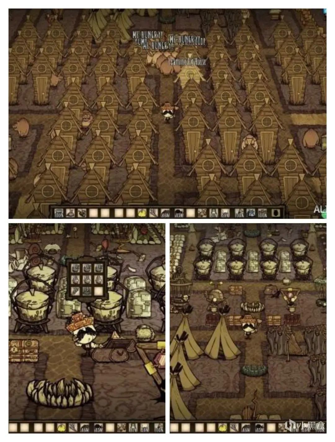 遊戲剛開始的時候,我對於那種“漿果叢圍繞着籬笆,兔籠當作冰箱”的原始村落狀態感到頗爲契合,一直到後來在聯機版本當中,親眼看到玩家們用大理石地磚鋪設出星象儀廣場,還用齒輪傀儡永動裝置來驅動40口烹飪鍋的生產線,這個時候我才驚訝地意識到建造系統竟然有着如此豐富的內涵。