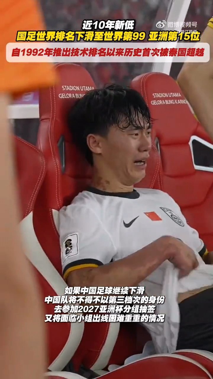 最新數據顯示,中國男足的國家隊FIFA排名已首次被泰國隊反超。更令人擔憂的是,若下滑趨勢無法扭轉,中國隊將在2027年亞洲盃分組抽籤中被列爲第三檔球隊,屆時小組出線將面臨前所未有的嚴峻挑戰