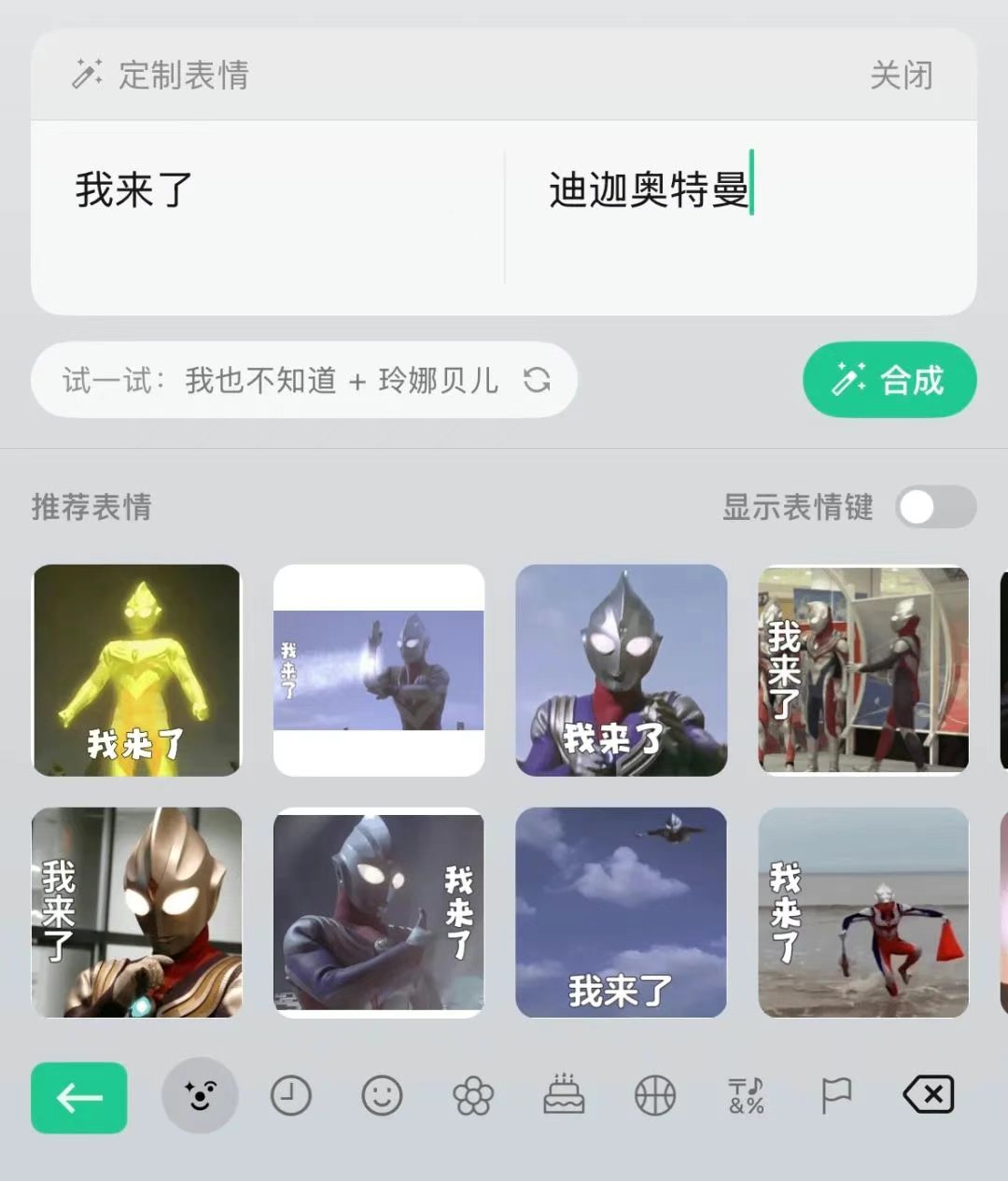 比如我们分别输入「我来了」和「迪迦奥特曼」。