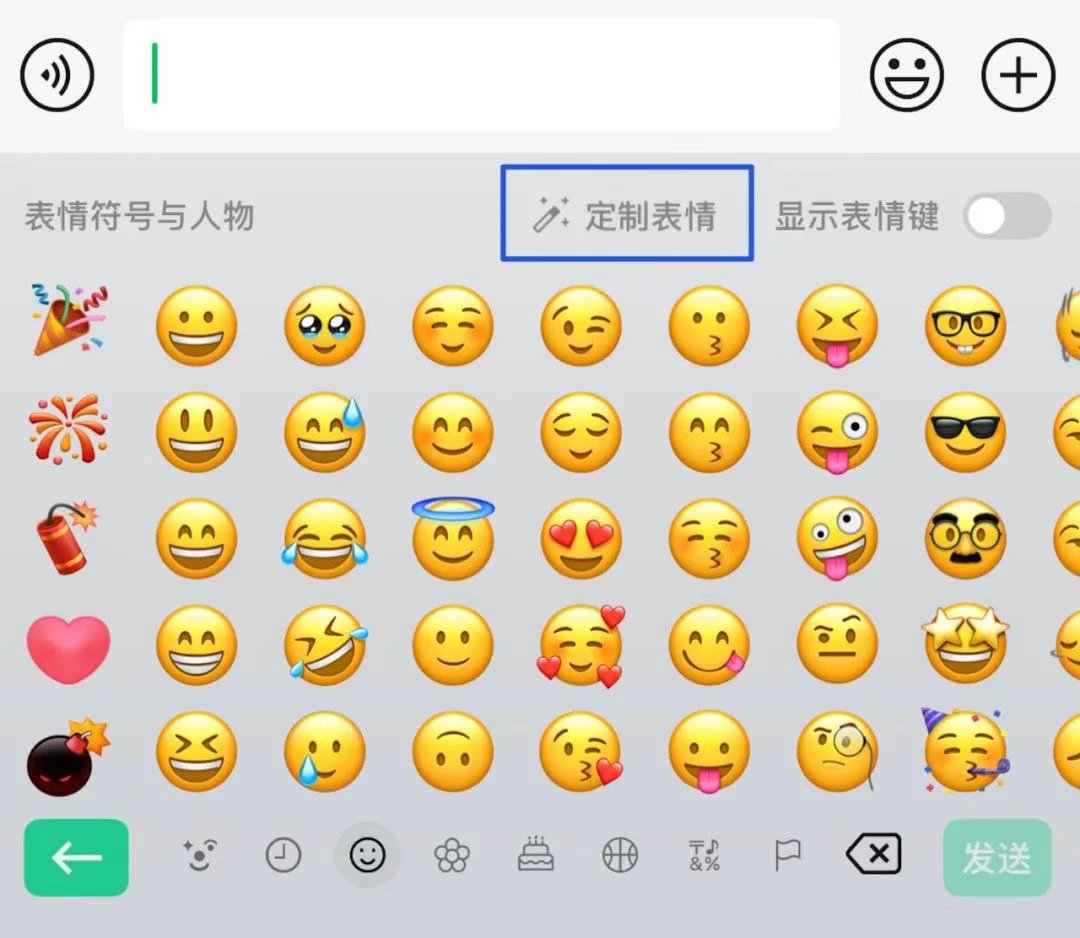 定制表情在微信输入法的表情页面新增了「定制表情」选项。