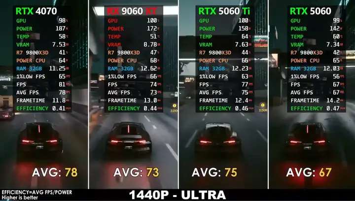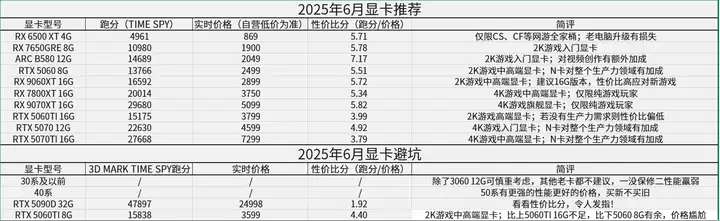 不考虑光追和DLSS;新加5060和9060XT显卡