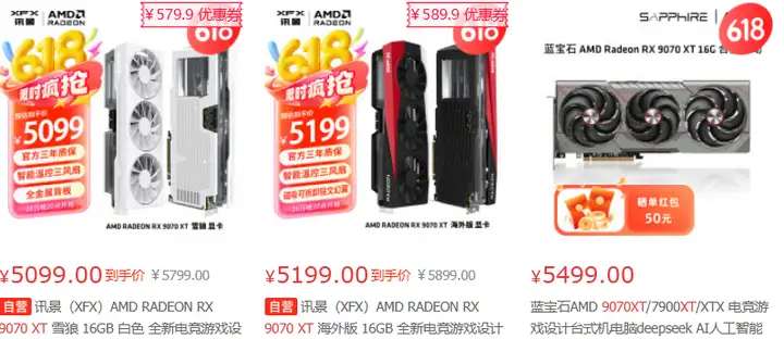 除了7800XT和7650GRE(7600),其他型号如7900XTX、7900XT、7700XT都不推荐,一方面是停产没质保,一方面有9070XT、9070、9060XT这些新品,以更好的性能却更低的价格替换上位!