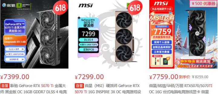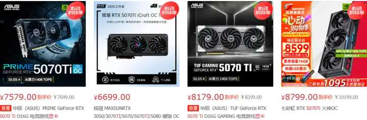 但价格上,5070TI却贵1千多!要再算上华硕七彩虹这种高端品牌旗舰型号...