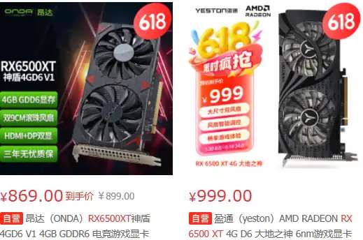 A卡RX 6500XT 4G,1000元价位,性价比分:5.71