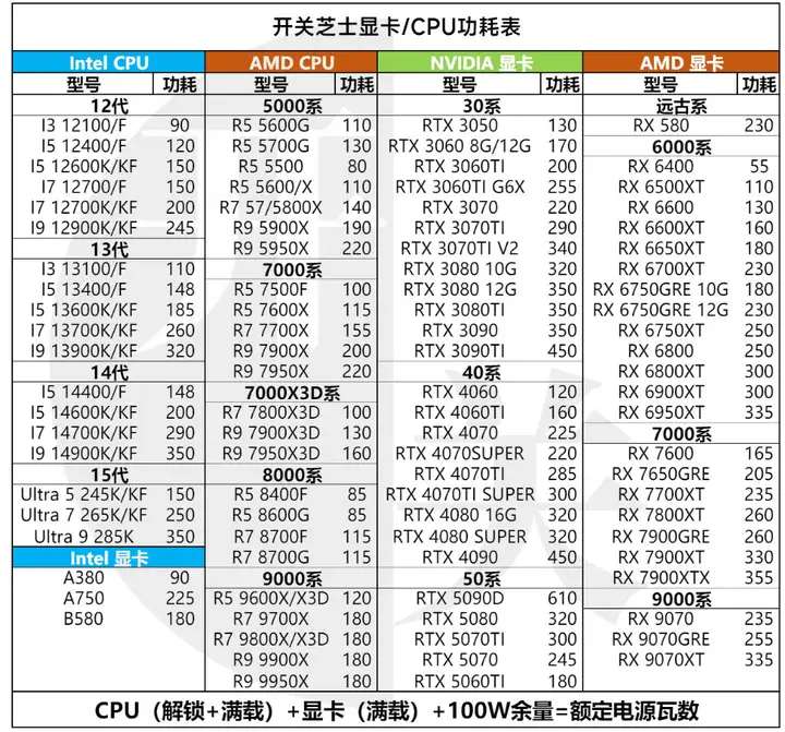 硬件主张买新不买旧,不光是性能、功耗的优化,新品的质保也更好,因此一大批老卡可以排除: