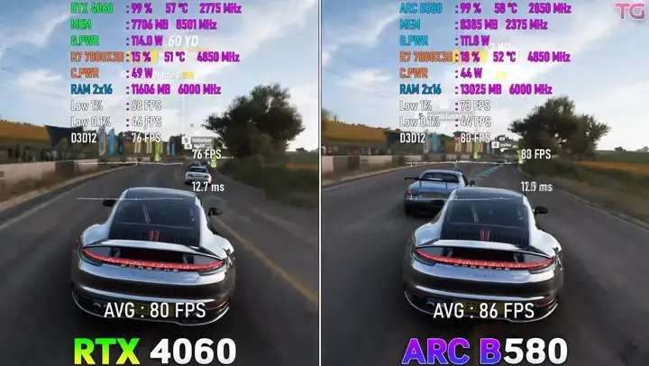 现在随着驱动持续的完善优化,目前部分新游戏表现甚至接近N卡的4060TI!(也就是接近5060)