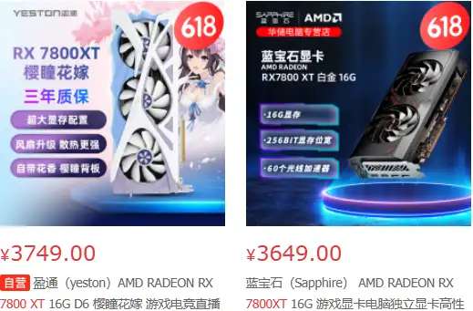 A卡RX 7800XT 16G,3700元价位,性价比分:5.34