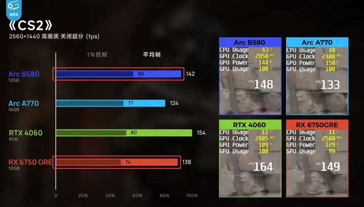 可即便如此,B580依旧保持着和4060同级别帧数: