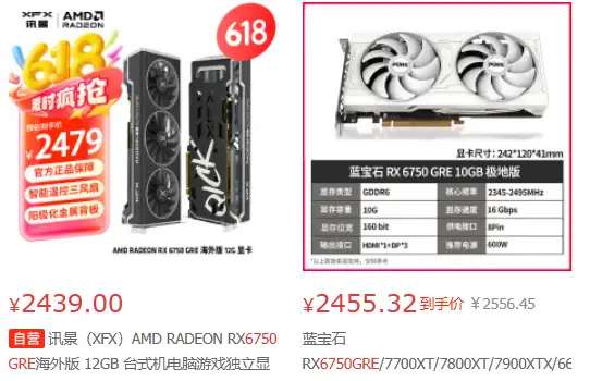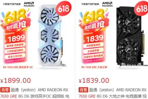 此前推荐的6750GRE 10G现在已停产,有货的也涨价到2000多,性能和7650GRE差不多: