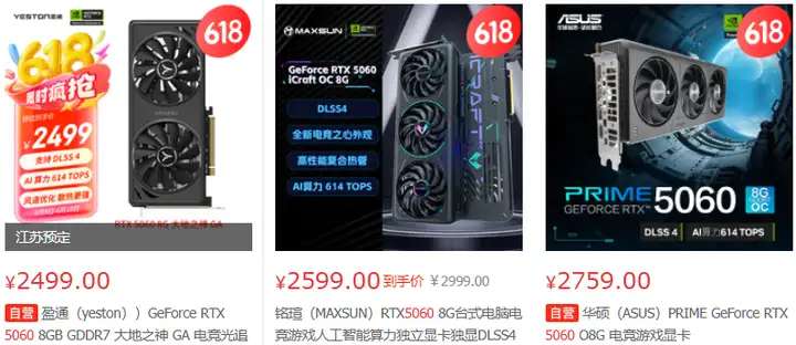 N卡RTX 5060 8G,2500元价位,性价比分:5.51