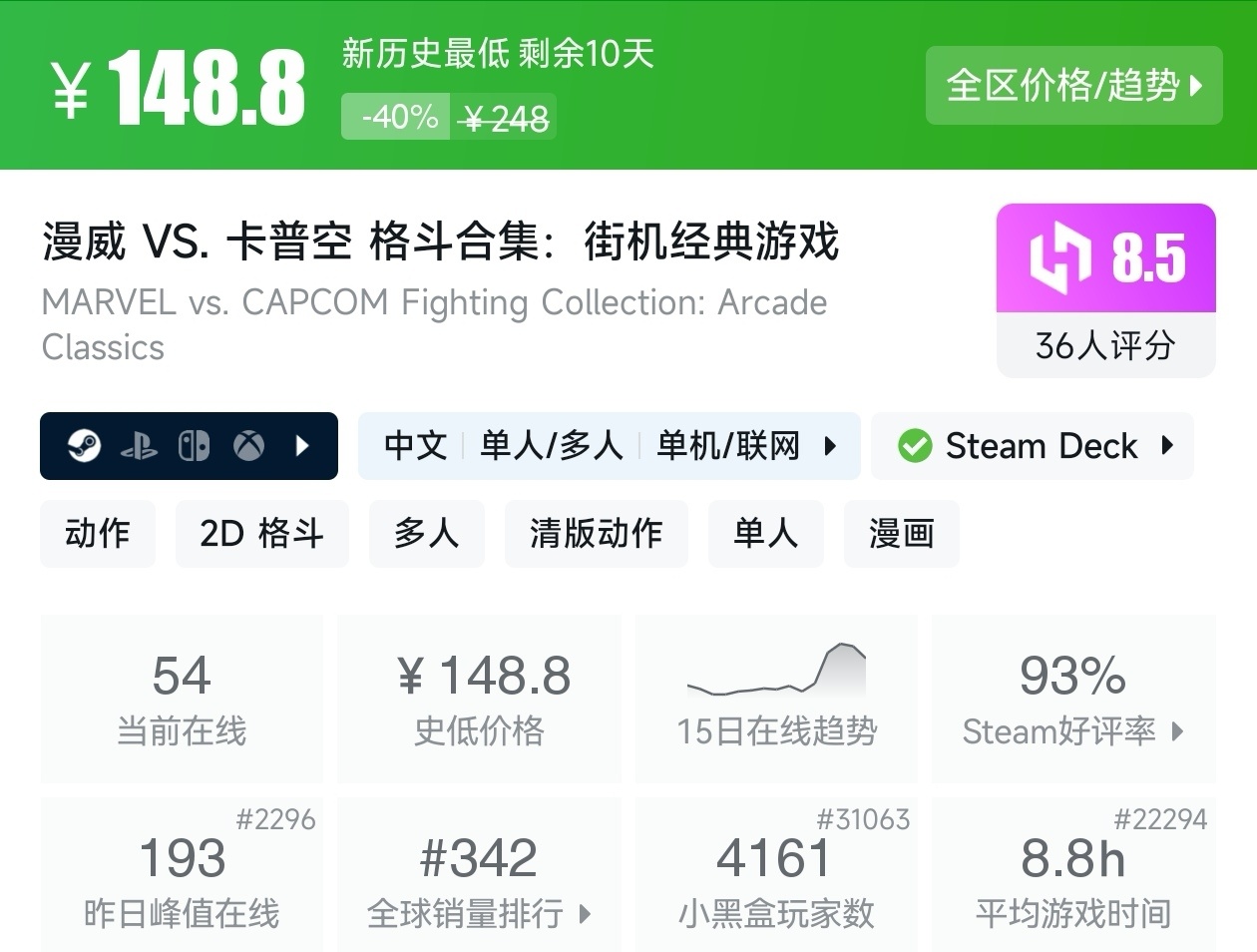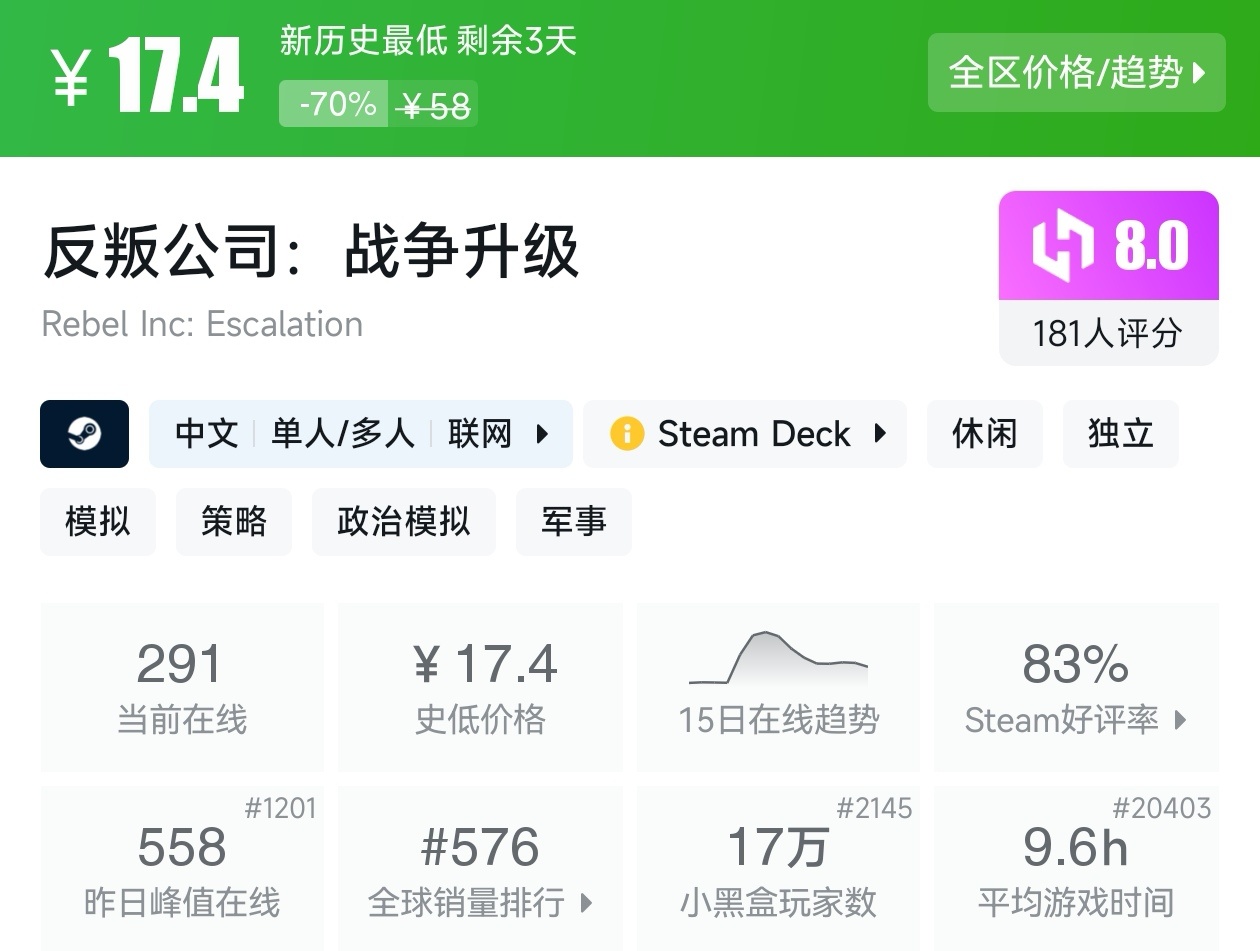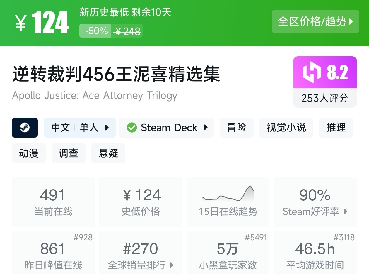 大家好,沒錯,又是我,你們的老朋友亦然,最近Steam有不少的新史低遊戲,其中還有一些大作,當然,很多遊戲的評價都挺高,卡普空這次更是亮眼,其實新史低遊戲買起來最有安全感了,因爲遊戲在很長一段時間都不會更低,我將爲各位進行一個彙總,希望我的彙總,能夠幫助各位盒友挑選心儀的遊戲。