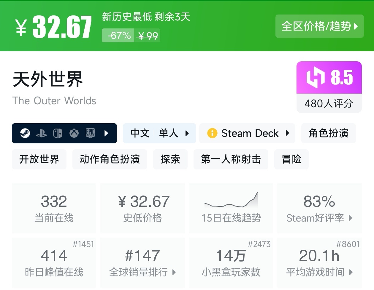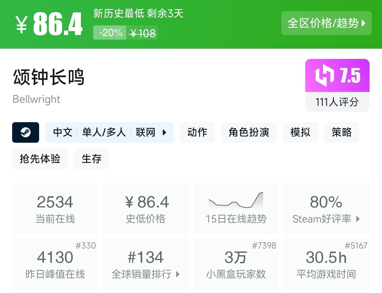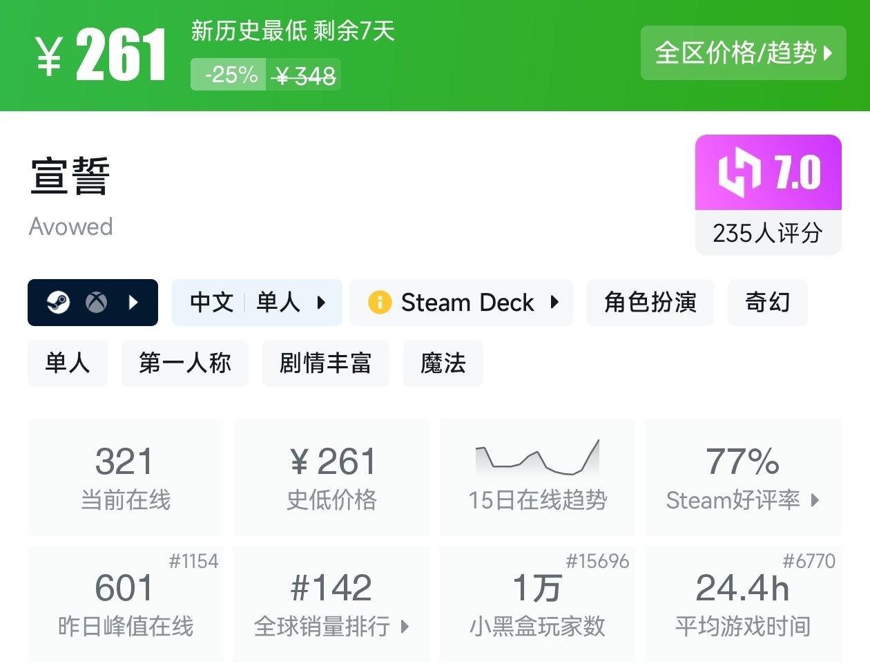 大家好,沒錯,又是我,你們的老朋友亦然,最近Steam有不少的新史低遊戲,其中還有一些大作,當然,很多遊戲的評價都挺高,卡普空這次更是亮眼,其實新史低遊戲買起來最有安全感了,因爲遊戲在很長一段時間都不會更低,我將爲各位進行一個彙總,希望我的彙總,能夠幫助各位盒友挑選心儀的遊戲。