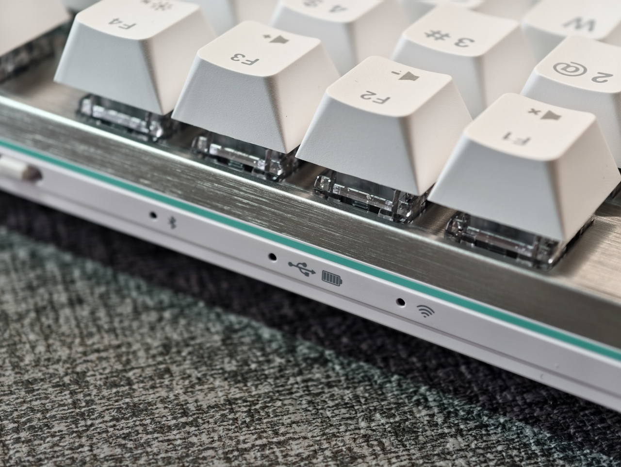 切換撥杆旁邊爲模式指示燈,這在其他磁軸,乃至三模鍵盤上都相對少見,大部分產品都設置在正面。預計這樣的設計目前是是爲正面觀感讓步。