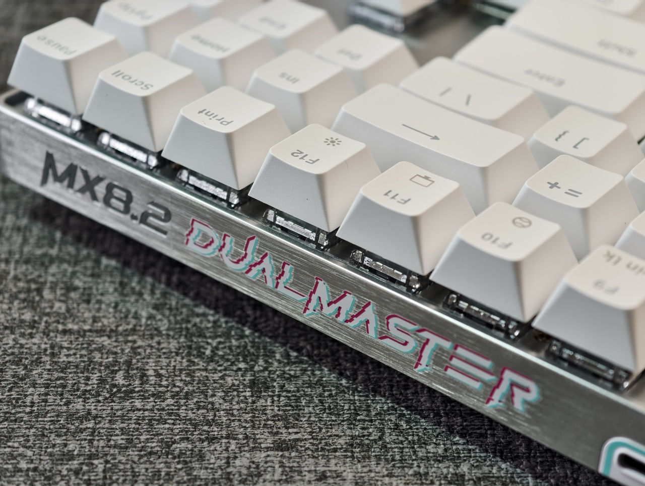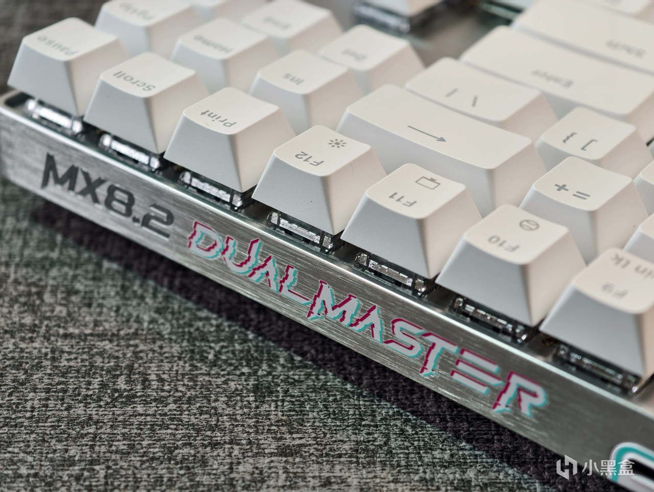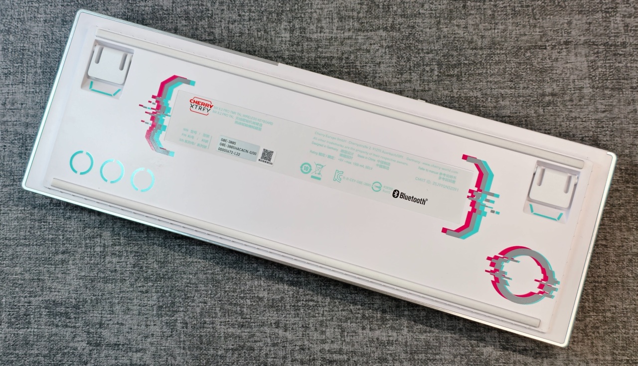 鍵盤正側面也有不少Cherry元素,背側則爲雙魔的Logo與MX8.2的標誌。整體的元素點綴還是十分克制的,並未因爲磁軸電競這類競技要素大開大合,很沉穩內斂。
