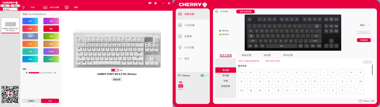 Cherry自研低延遲技術,延遲<1ms,支持有線/無線雙8K輪詢