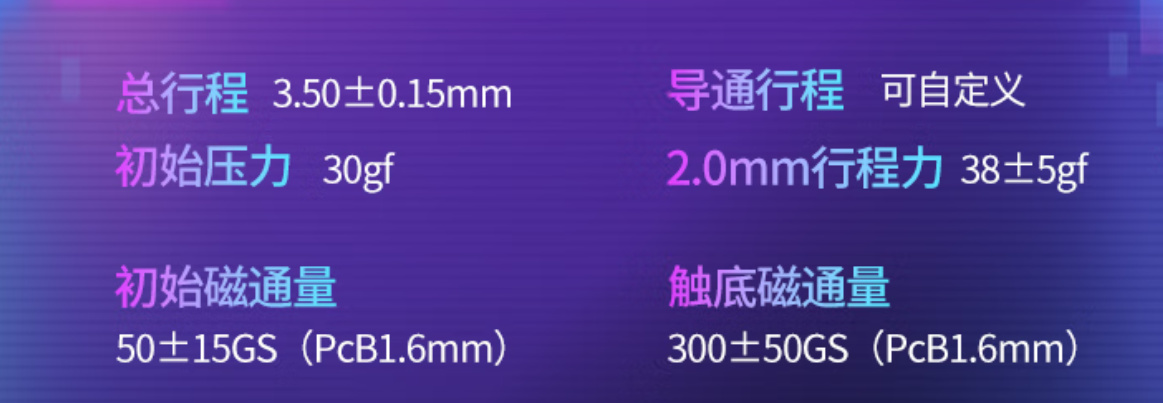 本身搭載的Cherry MX魔晶磁軸爲線性軸體,初始壓力爲30gf,觸底(2mm行程)壓力爲38gf,手感輕盈,觸發回彈靈敏。