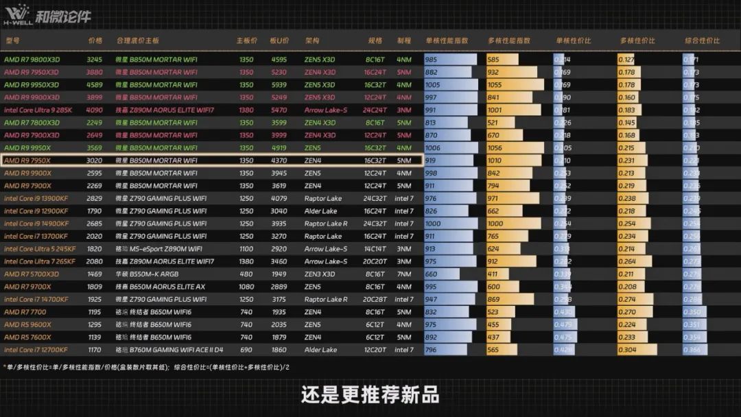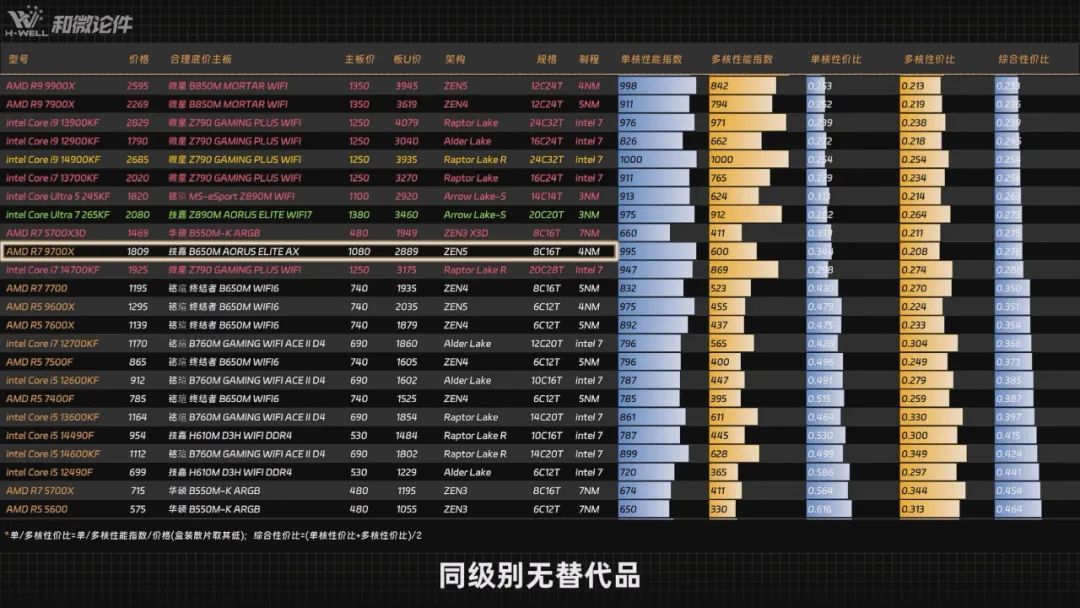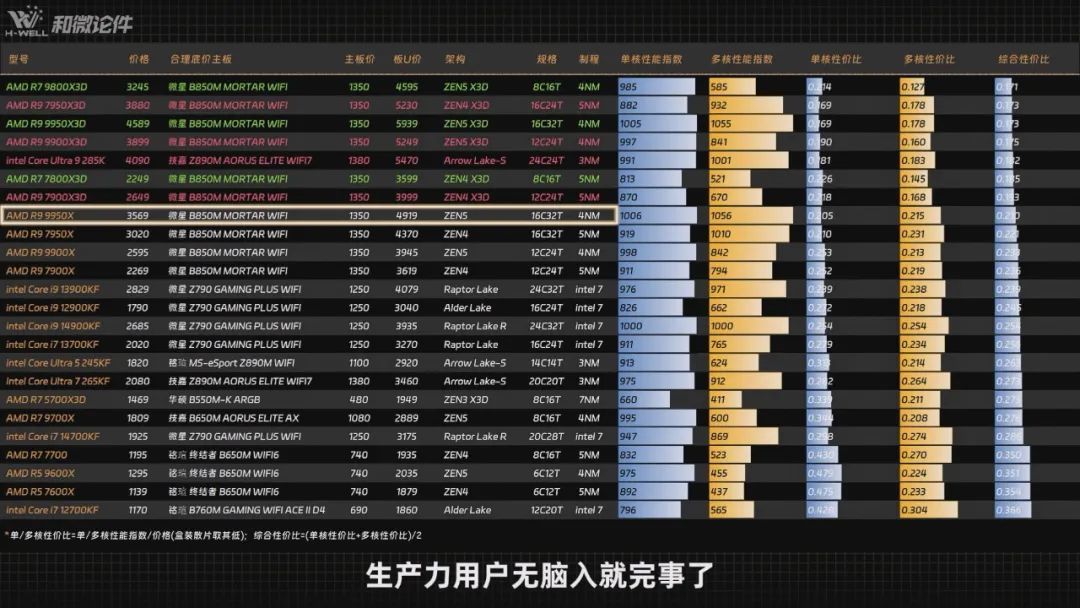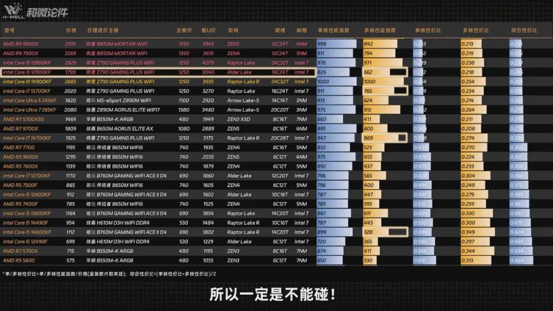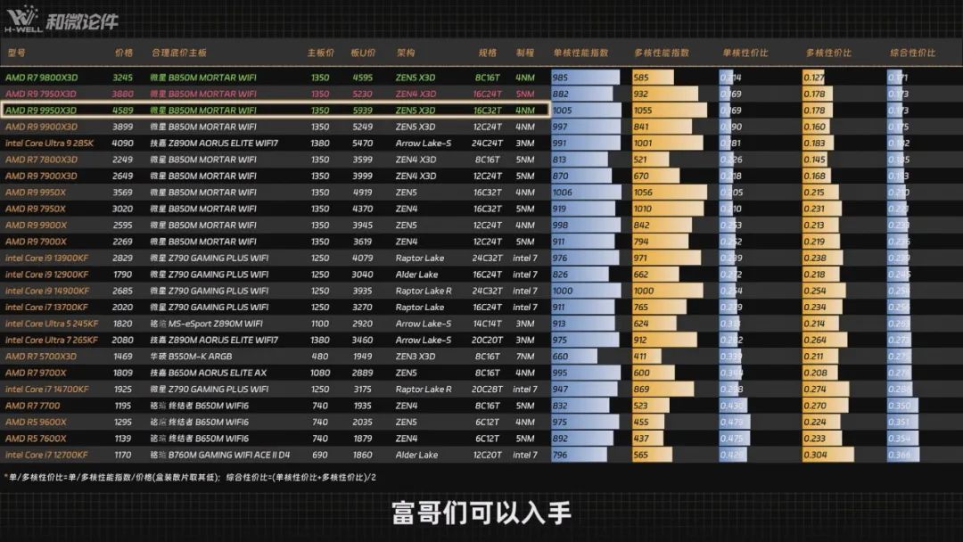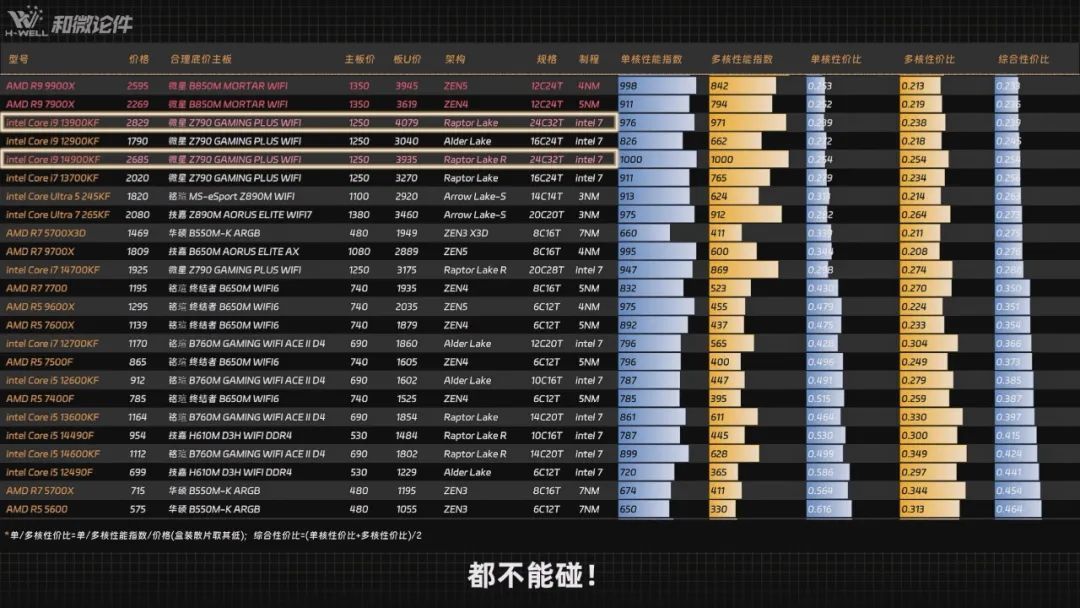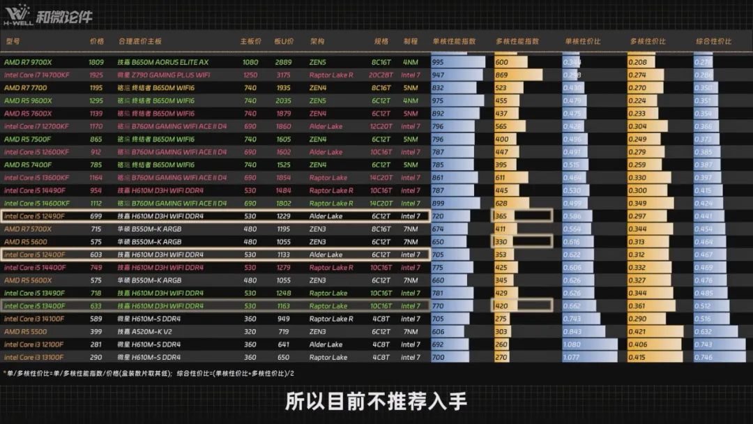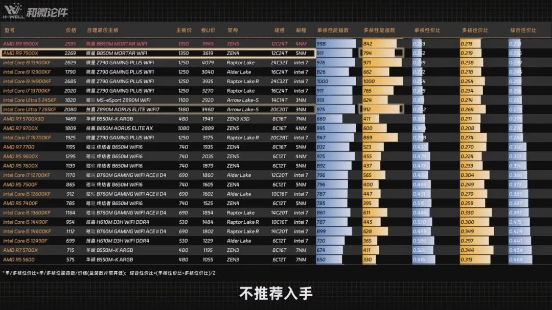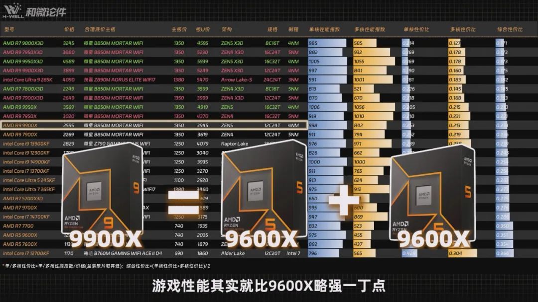 9900X,买他的估计基本都是生产力用户,那论生产力,同价位它的对手就是265KF,相比最近大降价的265KF,它的性价比就差的有点多了,从游戏性能的角度来说就更不推荐了,本质就是两颗9600X,游戏性能其实就比9600X略强一丁点。总体不推荐入手。