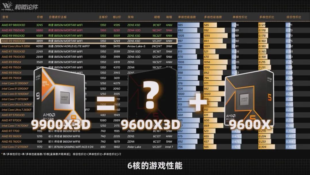 9900X3D,本月价格还上涨不少,推测原因是不好卖减产了。本质,是一颗9600X3D+一颗9600X,6核的游戏性能,必然是会逊色单CCD8核的9800X3D一些的,不推荐购买 生产力游戏兼顾更推荐9950x3d。