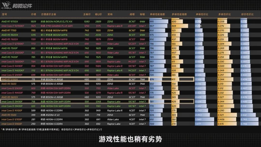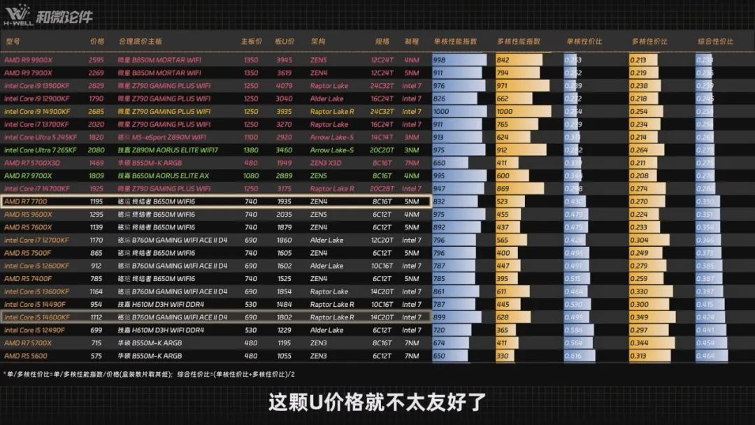 R7 7700,虽然9600X涨价,但游戏性能是真差了一截,然后还有14600KF的持续内卷,这颗U价格就不太友好了,生产力更推荐14600KF,价格更便宜,且强了一个档次,游戏的话,更推荐9600X。这个价位段的生产力用户,如果实在接受不了intel缩缸,也能入手。