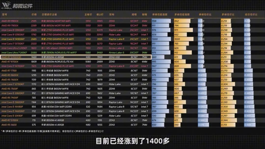5700X3D,千万别入手,相比底价900多,目前已经涨到了1400多,就算你有AM4的老主板,也不值得买,价格太离谱了。