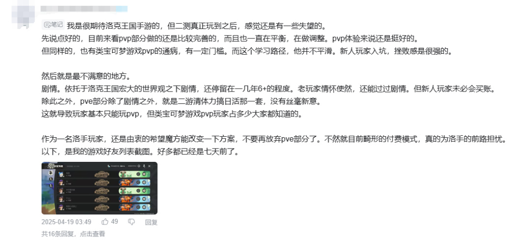 这也导致部分对于PVE内容不够多的玩家,开始质疑项目组在运营上上过于侧重PVP,甚至出现了PVE vs PVP之争。综合剧情、PVE和PVP来看,《宝可梦》系列游戏并不长于剧情,所以对于《洛克王国世界》剧情体验不佳是有预期的。然而PVE上加入更多精灵战斗的关卡和肉鸽爬塔等玩法,在大世界里也可以加入钓鱼、家园等系统,以及在PVP里加入一些竞速等轻量化的玩法都不应当是难事。