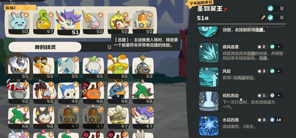 比如「翼王」的「飓风」特性和技能的迅捷(先手释放技能)机制,能先手一口气打出多个技能,如果没有提前应对,被打出这一套伤害的精灵大概率会阵亡。