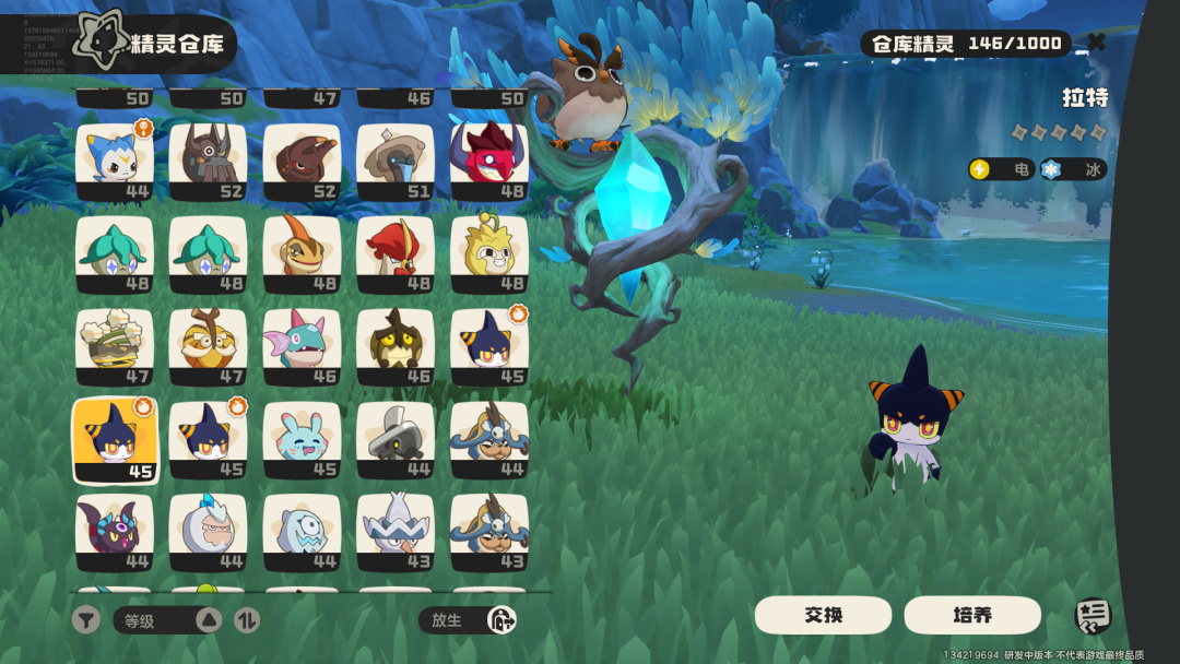 高等级后的精灵升阶需要将同类精灵捕捉后放生获得材料,想要获得数值上完美的精灵需要抓取几十只相同宠物。不过游戏里并没有强制要求精灵数值达到完美,目前测试版本对于可刷取的怪物上限和精灵球上限做出了限制,但整体养成压力并不算大。