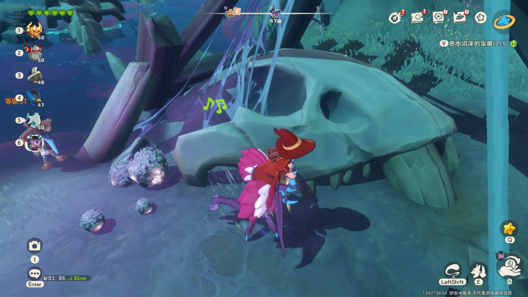 测试期间虽然放出了收集精灵宝藏的限时活动,但内容也比较套路,就是骑着宠物在地图上多个点位开宝箱,获取并不诱人的奖励。