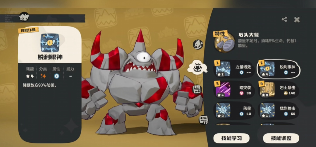 战斗分为PVE和PVP两部分,PVE里可以运用精灵的基础特性机制解决,比如「雪灵」在场时能增加对手能耗,应对首领BOSS很好用。而「罗隐」的特性是能量不足时消耗生命值,也就是血量当能量用,再搭配降低对手防御的技能,打出卖血后高爆发的狂战士效果,PVE的很多场景里都能一击必杀。
