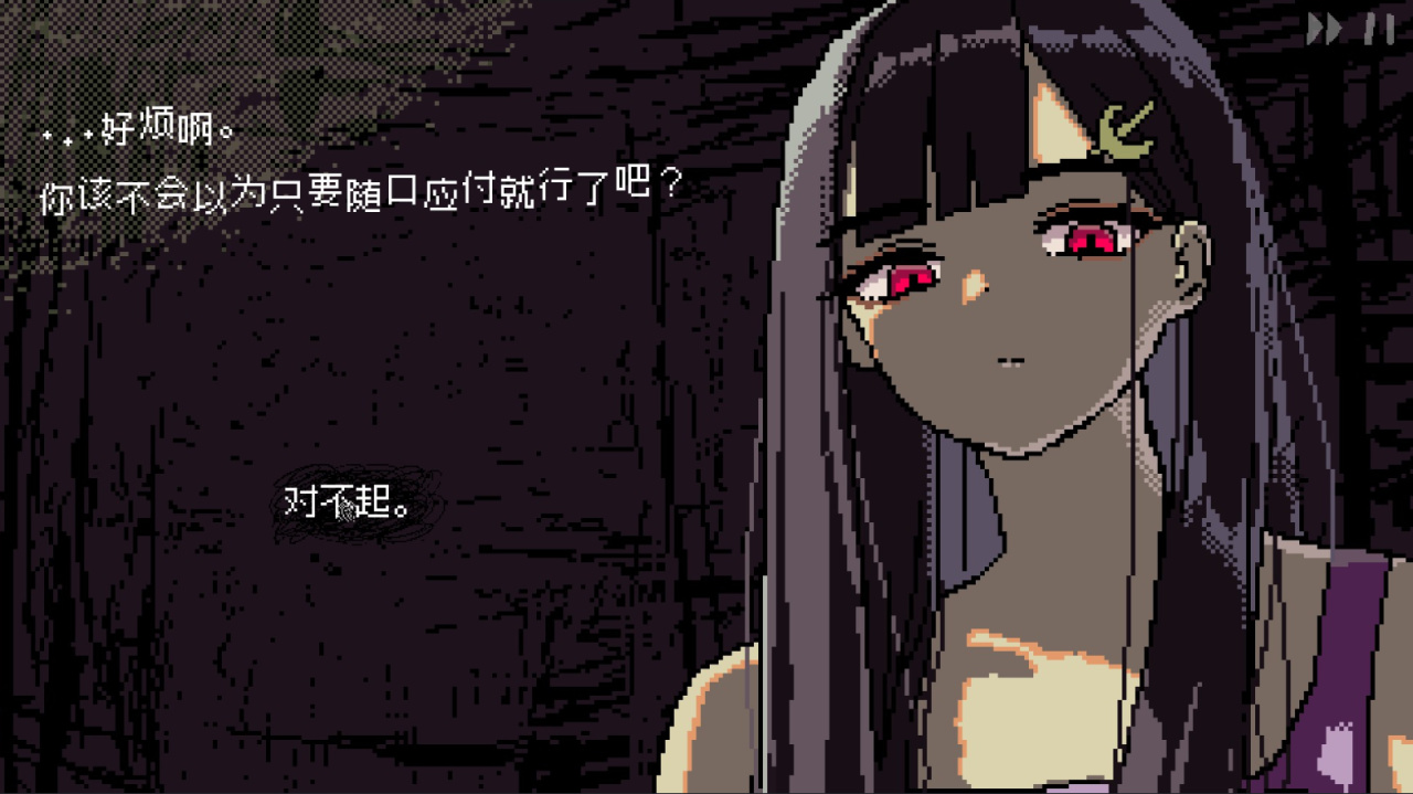 而且遊戲確實設有與女主之間所常見的情侶對話情景,只不過如果你稍微說了一些女主不喜歡聽的,或者是答非所問,置之不理。就會瞬間讓故事走向Bad End——輕而易舉地將你碾碎手掌心。