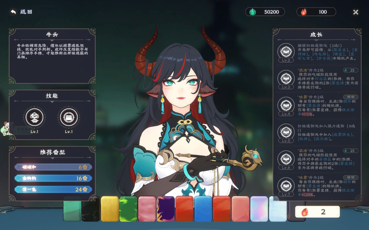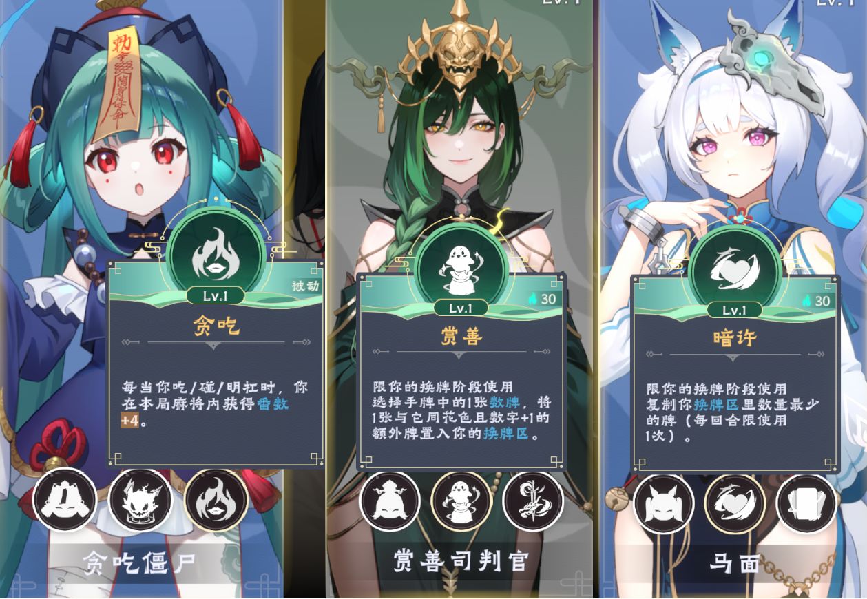 鬼娘拥有不同的主被动技能,这影响了玩家的构筑和胡牌方向