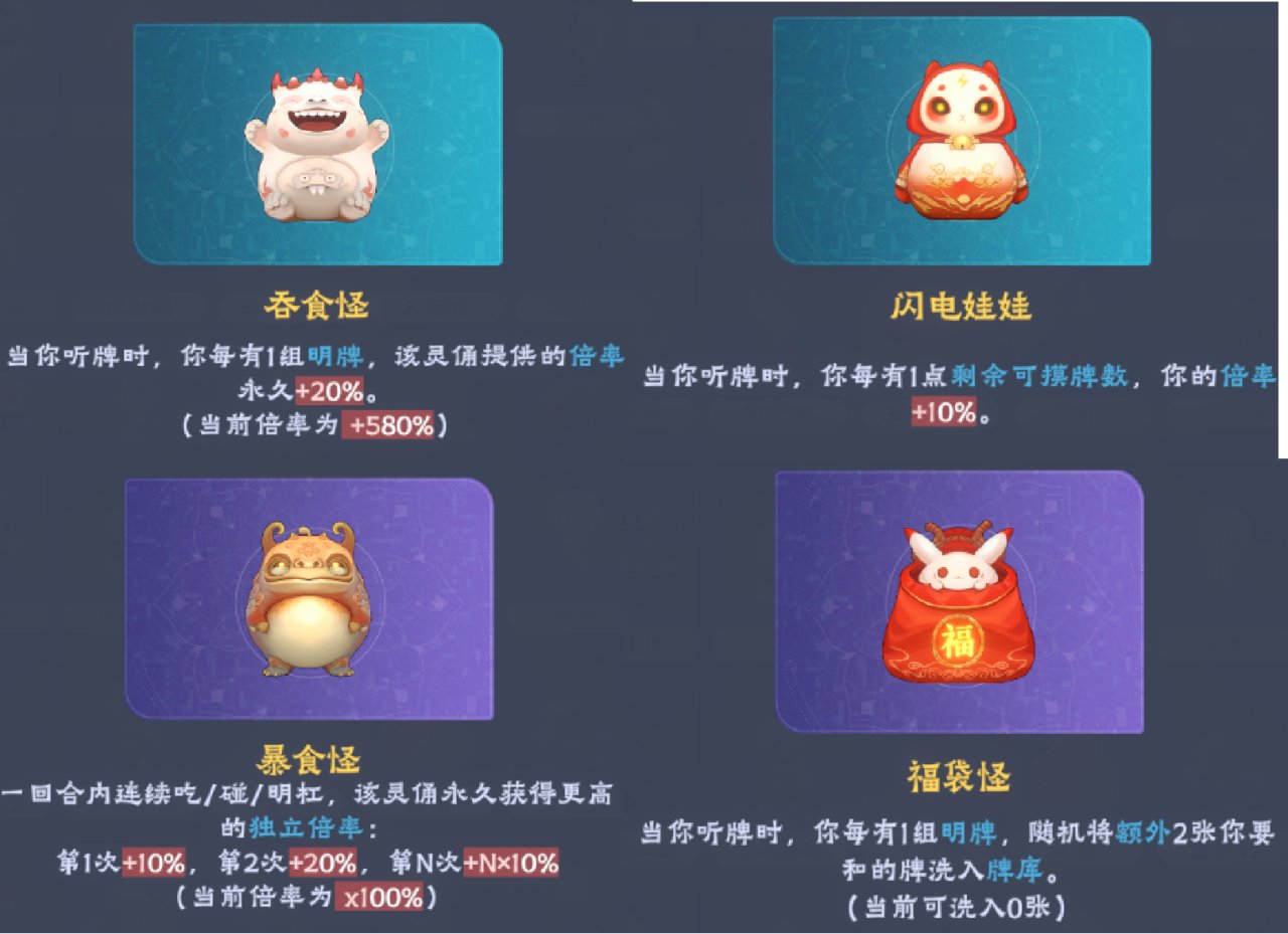 连续吃/碰/杠、每一组明牌永久性增加倍率,这种成长型灵佣简直是全求人必备