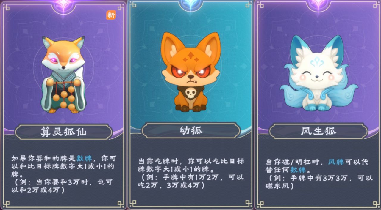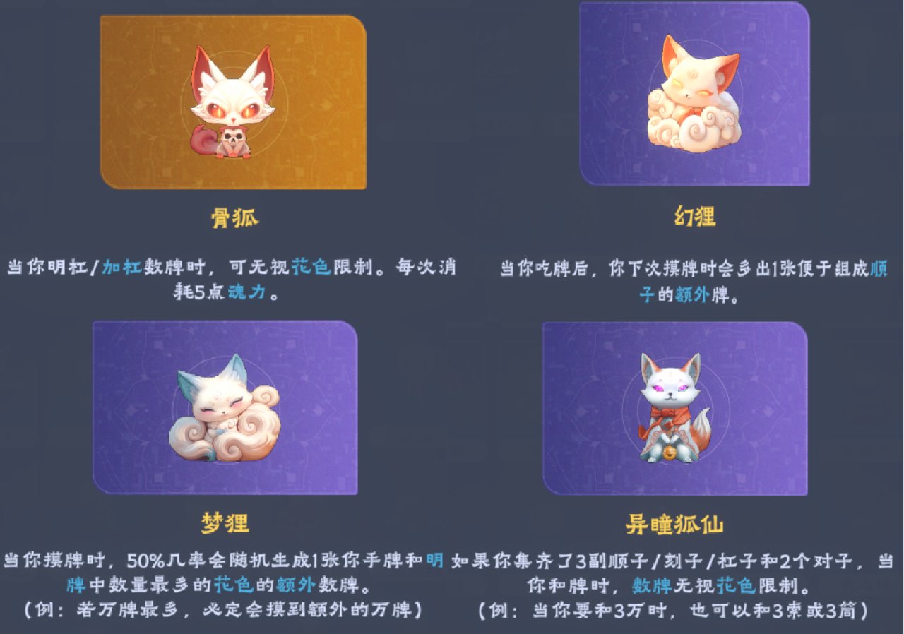 九尾狐:吃、碰数字牌时,无视花色限制,吃/碰更多