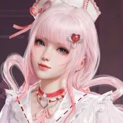少女一头淡粉长发,灵巧地编成了双爱心辫,垂落身后。