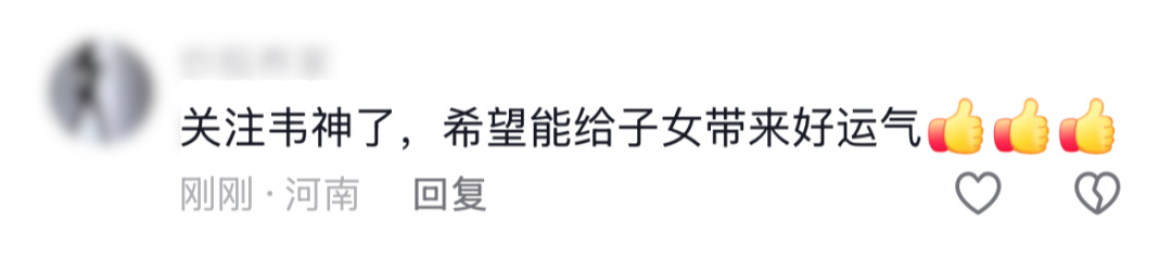有人關注韋東奕,希望這樣能給子女帶來好運氣。