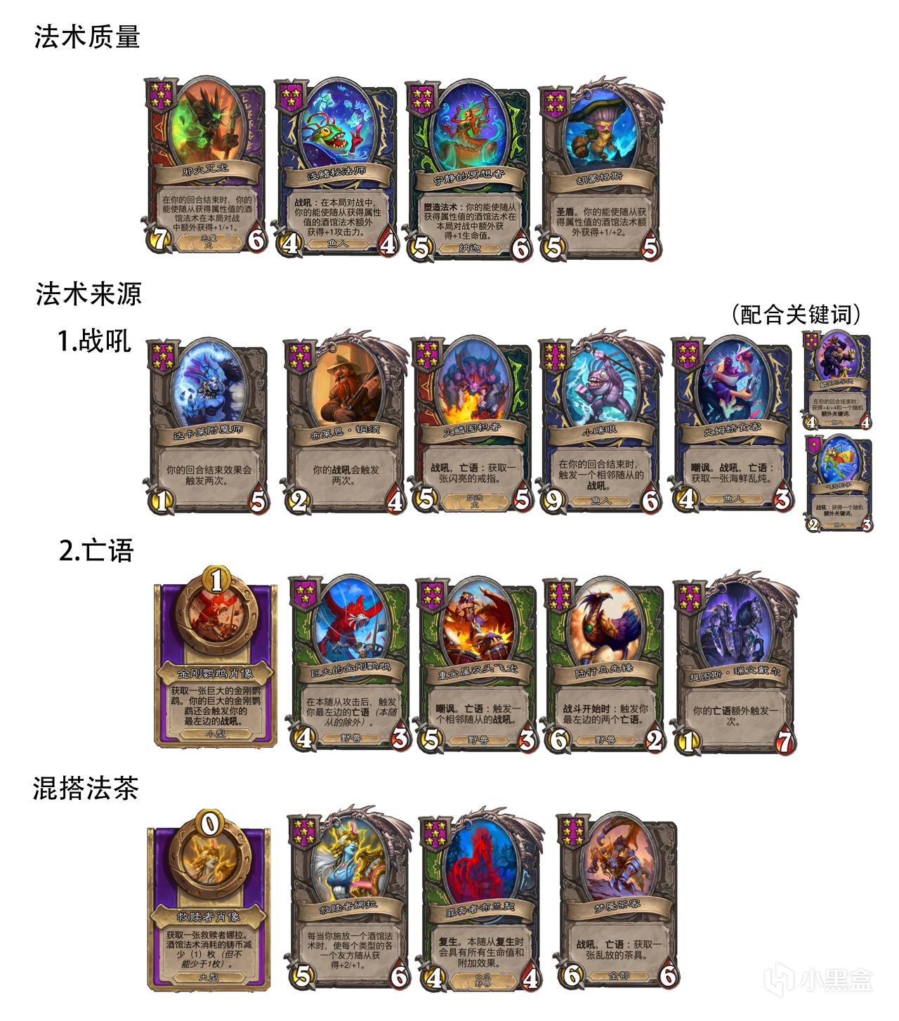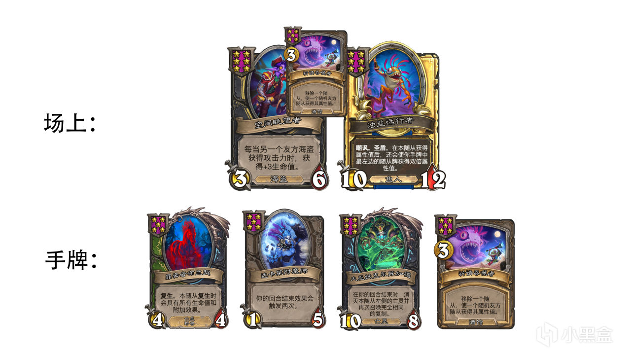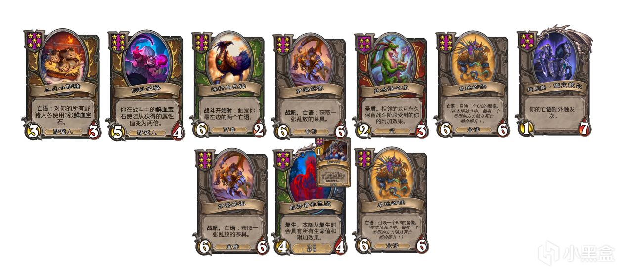 利用詩心龍戰鬥階段保留相鄰龍的附加效果的特點,用當前版本熱門的亡語流野豬體系給融合怪保留大量鮮血寶石,再轉型亡靈馬。適合沒有野獸,但有亡靈和龍的局玩。因爲沒有野獸的野豬上限並不高,不轉型幾乎沒有喫雞能力。