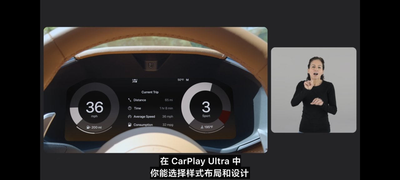 Apple更新了全新的CarPlay,把毛玻璃效果也加到车机上了。还推出了CarPlay Ultra,CarPlay Ultra需要与车厂深度合作,我的理解就是可以让CarPlay代替车机的80%的功能(比如开关空调、调整座椅等),国内车厂...等适配吧(我觉得像华为、小米这类的车厂应该没有愿意让Apple代替它的车机),byd之类的在适配了