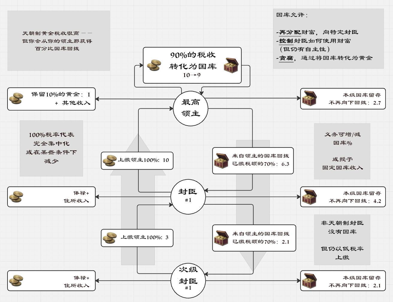之前日志提到过,地图上中华内也依旧存在着一系列帝国法理,但它们在稳定的时代通常不存在。官场的顶点是朝臣,它们是帝国级头衔的官职,将在下一节中介绍。