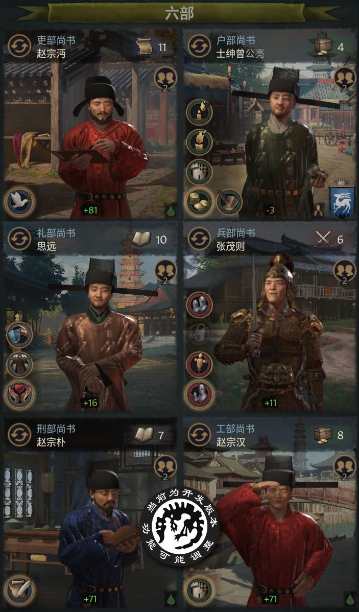 [内阁视图中的六部——高度开发中,非常粗略——我们知道现任尚书的能力不太好!并非所有数值都已调整完善]