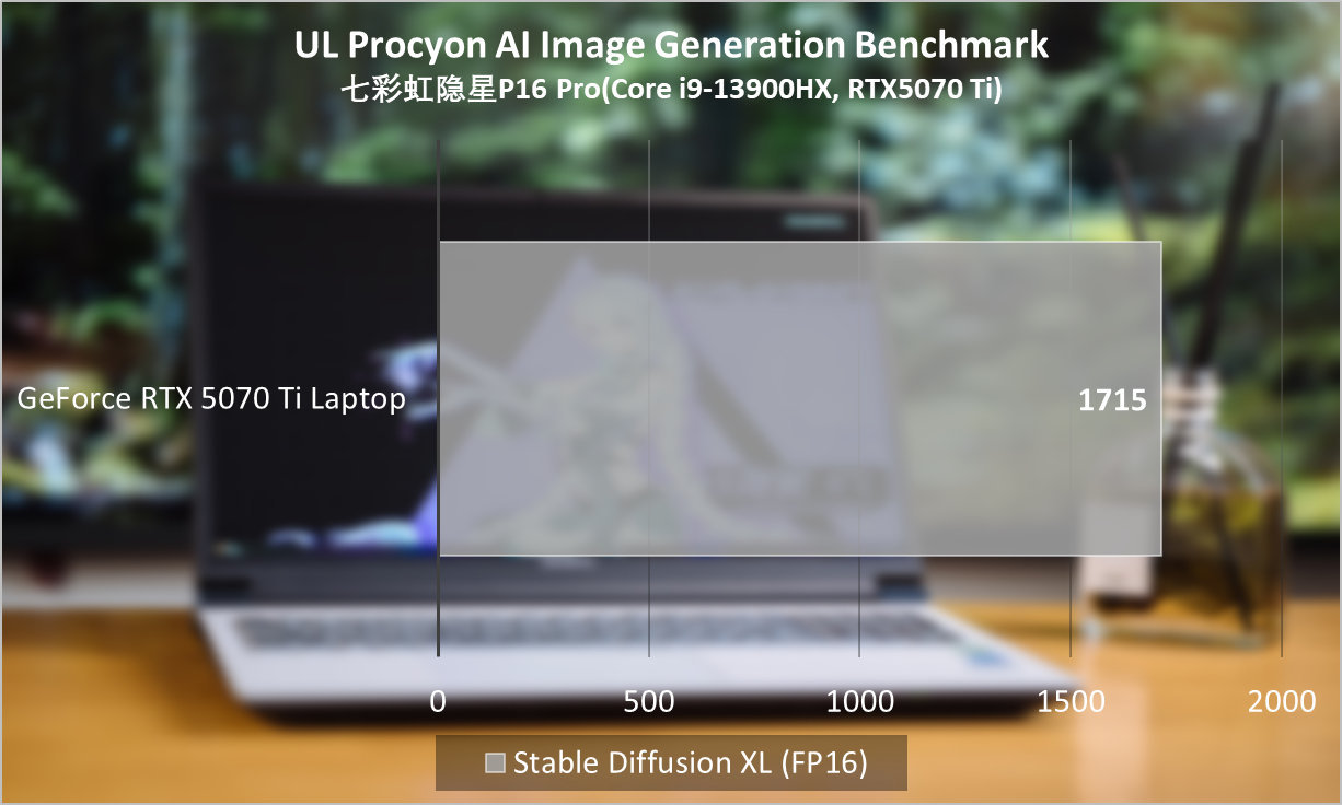 即使开启Procyon测试中最高规格的Stable Diffusion XL FP16,七彩虹隐星P16 Pro也可以跑通,并实现21.852 s/image的速度,意味着在半分钟内,笔记本就可以在本地生成更高规格的图像。