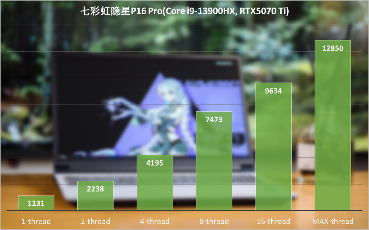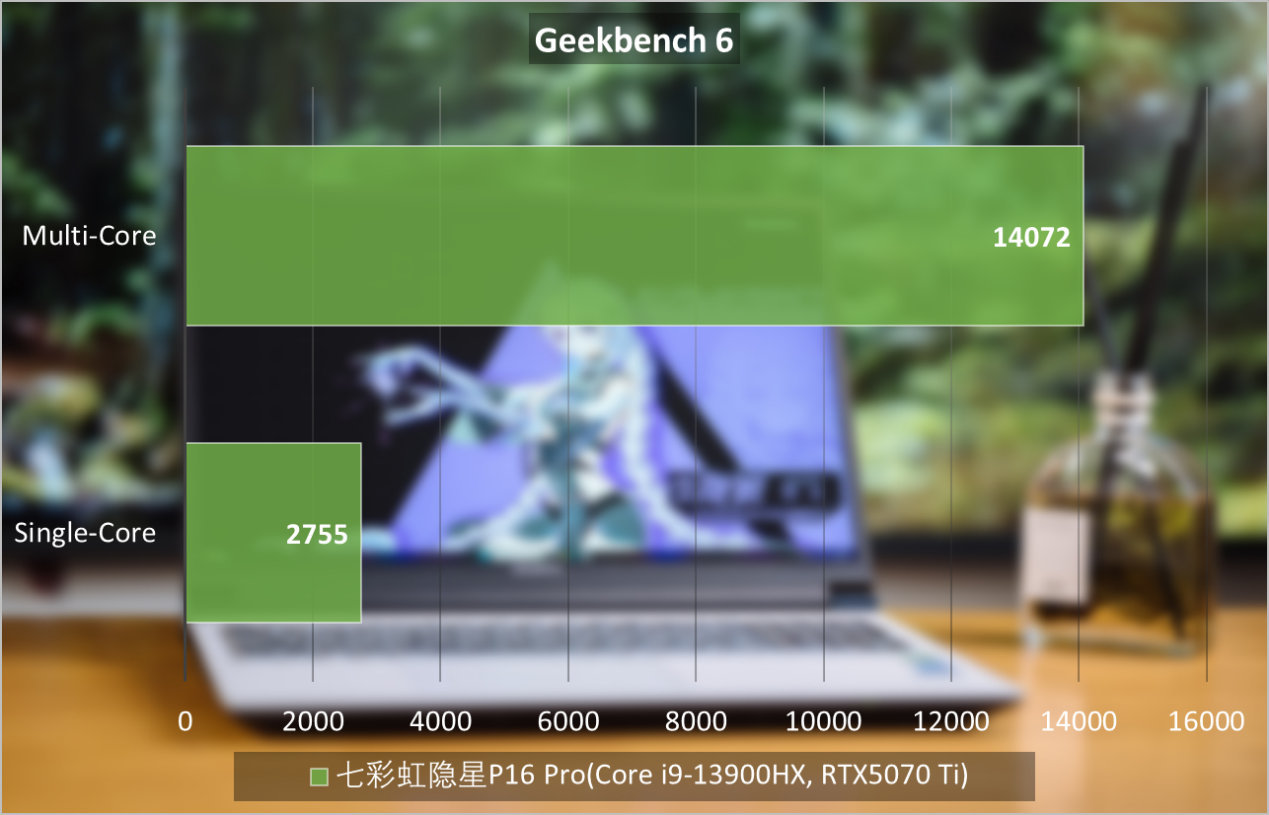 Geekbench是常用的跨平台处理器基准测试,CPU部分专注单线程与多线程的整数、浮点与内存访问情况,也可以看出酷睿i9-13900HX在七彩虹隐星P16 Pro充足的性能释放下,依然能打。
