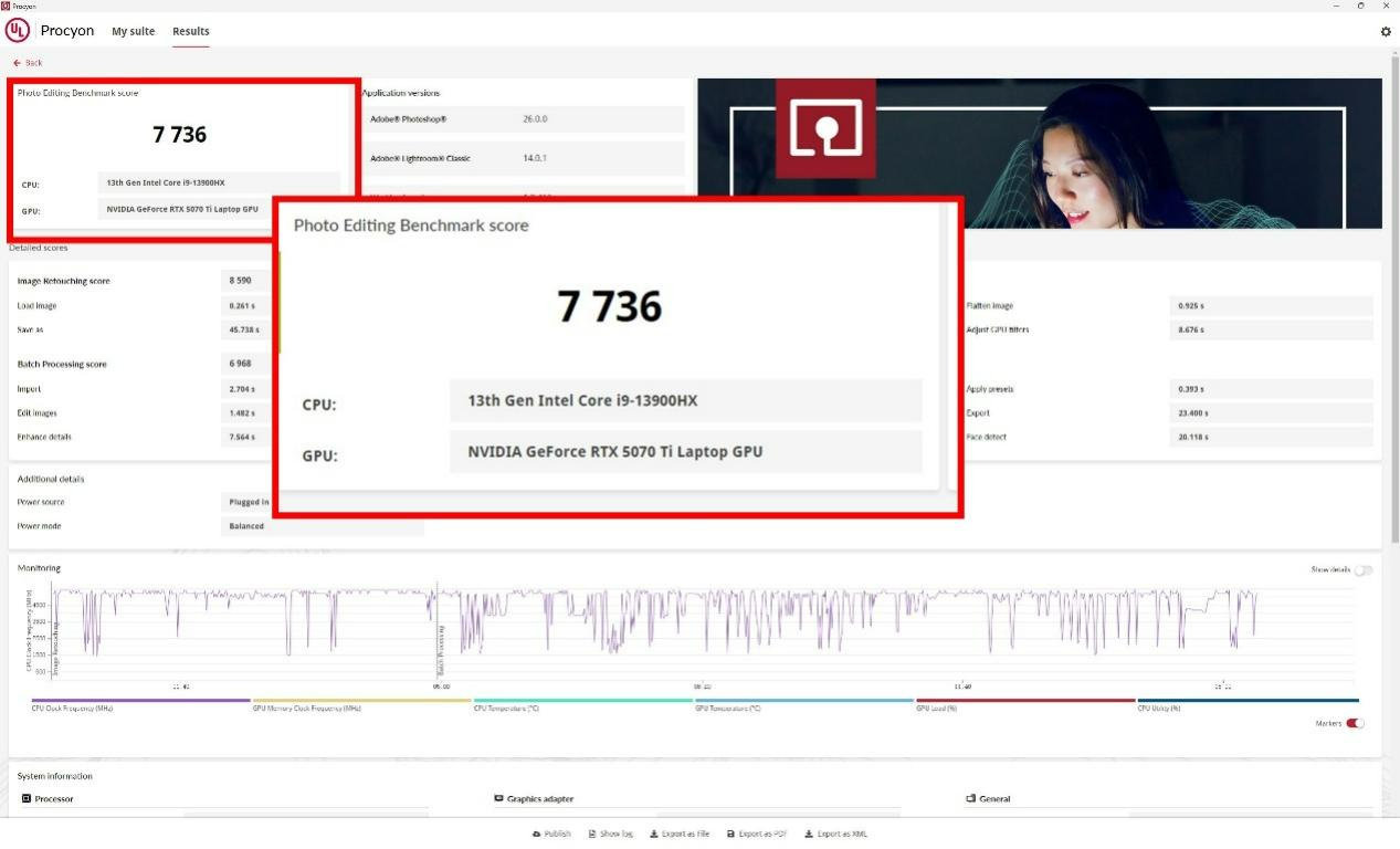 然后是视频编辑于图片编辑,七彩虹隐星P16 Pro对于H.264 FHD和H.265 4K UHD的视频输出,以及Photoshop和Lightroom的图片加载与编辑,都表现出了应有的性能。